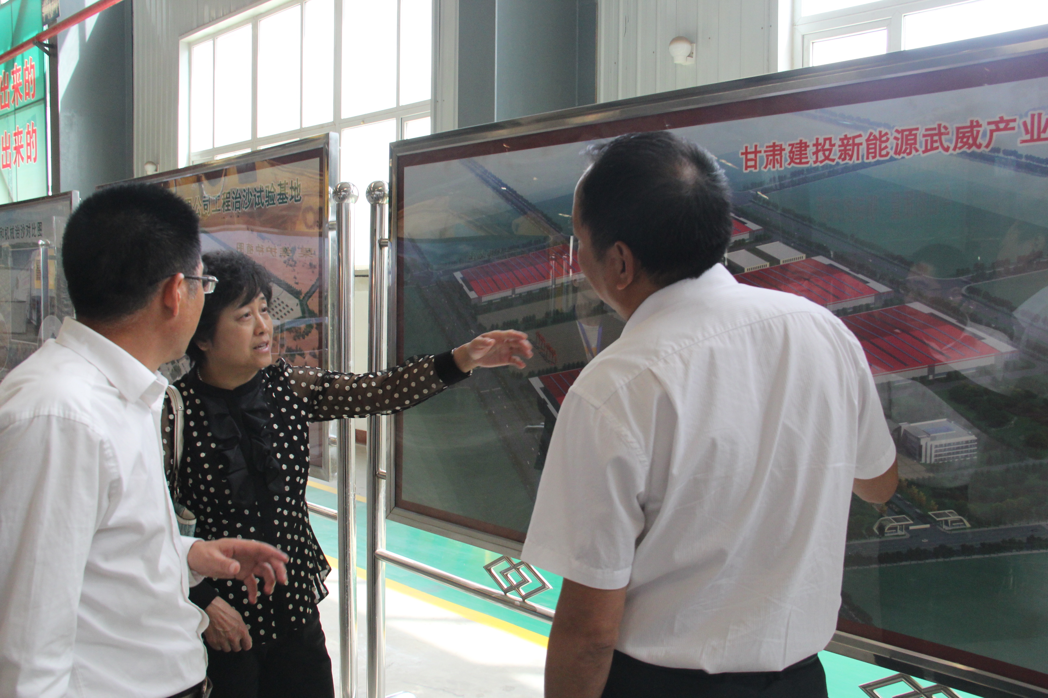 5月26日,甘肅省農(nóng)機局副局長曹新惠一行在甘肅建投新能源科技股份公司董事長陪同下調(diào)研立體固沙車研發(fā)生產(chǎn)工作。